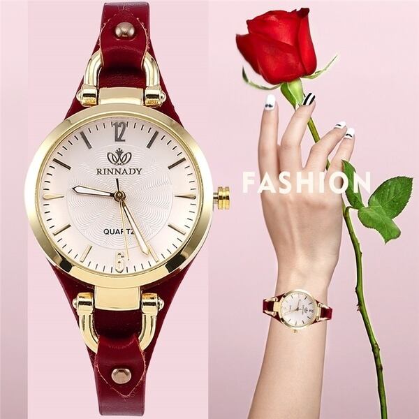 カジュアルウォッチエレガントラウンドダイヤルスタッズPUレザーストラップ時計ドレス女性' sクォーツ時計ギフト
